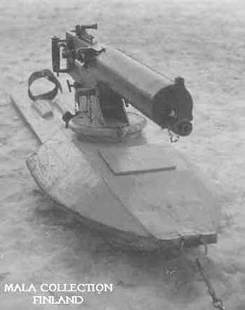 The standard heavy machine gun in Finnish service was the Maxim. There were a number of models of Maxim in Finland, two of Russian origin. There were two Finn modified versions known as the 09/21 and 32/33, and there were also limited numbers of German 08 Maxims serving in Finland. All were belt fed, and all but the 8mm German Maxims were in 7.62X54 caliber. The Maxim was a very tough machine gun.