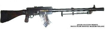 The Lahti/Saloranta (LS/26) Light Machine Gun was one of the first light machine guns in the world and was chambered in the standard 7.62X54R round with a 20-round magazine. While well made the design proved to be flawed during use in the Winter War, as the parts were too fine and often caused the machine gun to jam or lock up. During the Winter War, the Finns found the Soviet-made light machine guns to be much more suitable for combat. The key light machine gun for the was the Soviet Degtyarev or DP-27. By the end of the Winter War, Finland made use of over 3,000 captured DP-27s .
